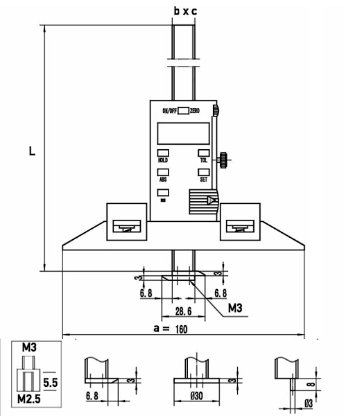 • display met aan/uit/nul, tol, hold, set, abs en mm/inch knop