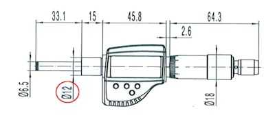 Digitale inbouwchroefmaat DIN 863, 0~25 mm, Ø 6.5 mm