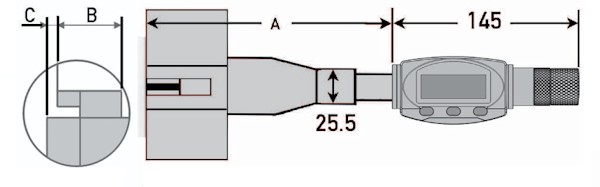Driepuntsgatschroefmaat D, 125~150 mm, 0.001 mm